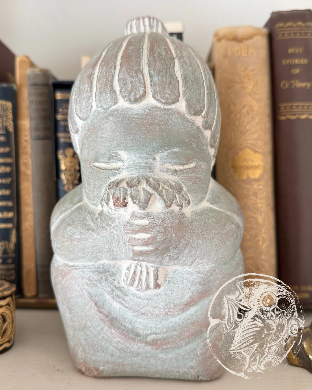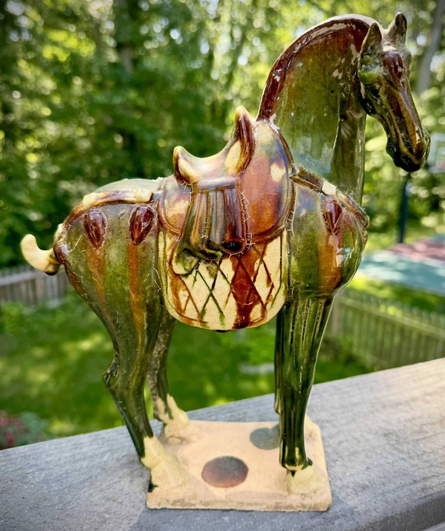 Buddha $15.00 Decorative pitcher with inlay $15.00 Solid brass rocking horse $15.00 Vintage hand-painted ceramic horse $15.00 Small green vase $15.00